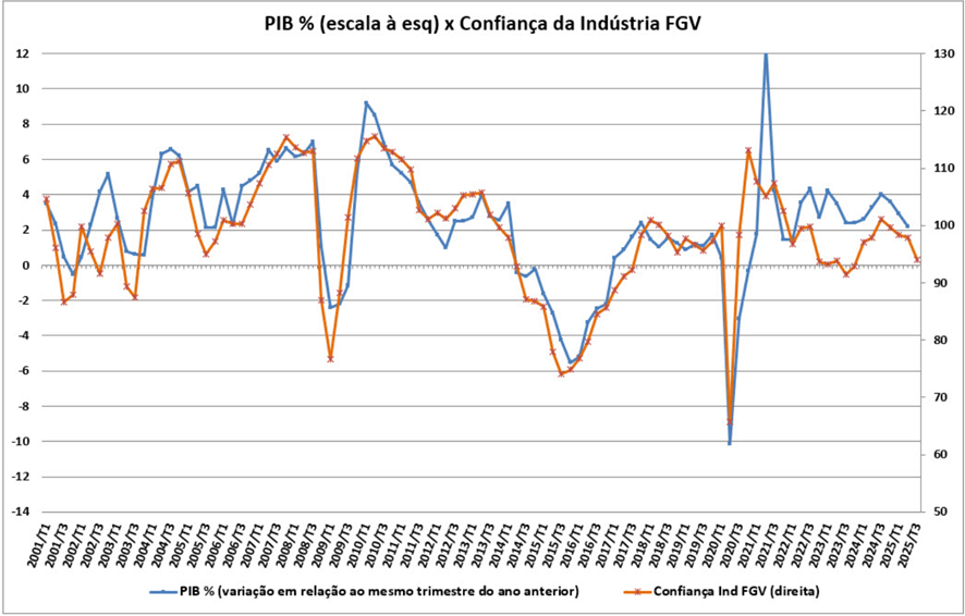 Imagem com a correlação entre o PIB e a confiança da indústria retirado do site da FGV