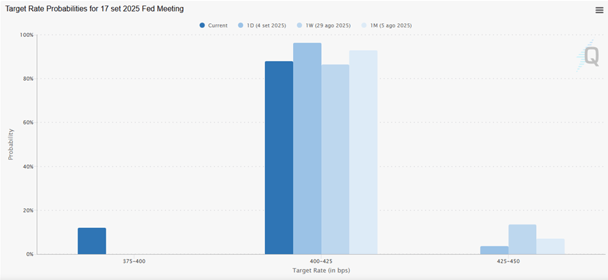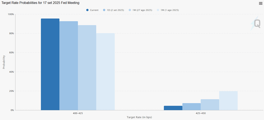 Como consequência, aumentaram as apostas de que o FED vai cortar juros na reunião de setembro do FOMC, que passou de 92 para 95% de chance.