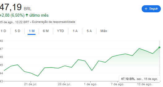 Pela manhã, os papéis saltaram mais de 3%, cotados a R$ 49,38 por volta das 10h50. No acumulado dos últimos 30 dias, as ações da IRB cresceram 6,50%.