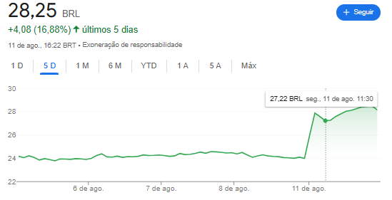 O movimento de subida começou na semana passada, impulsionado por após um balanço 2T25 que superou muito as expectativas do mercado.