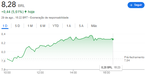 Já as ações da Casas Bahia (BHIA3), outra gigante do varejo nacional, subiam 4% nesta sexta-feira (29), cotadas a R$ 4,42 às 16h22.