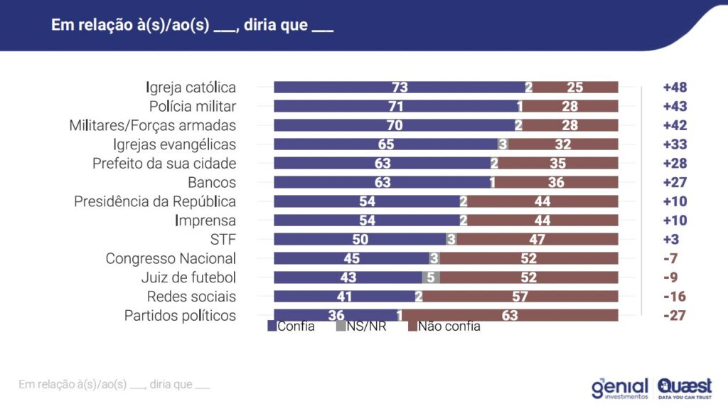 Ranking de confiança das instituições no Brasil, segundo a Quaest