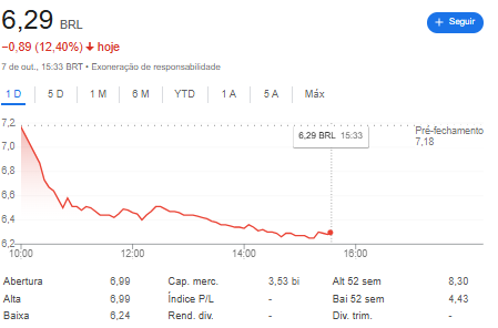 As ações da MRV&Co (MRVE3) caíram 10% nesta terça-feira (7), chegando a R$ 6,27, após a construtora divulgar uma prévia operacional fraca para o terceiro trimestre de 2025. O mercado reagiu mal ao desempenho, colocando o papel entre as maiores quedas do Ibovespa, com uma desvalorização de -12,67% por volta de 16h.