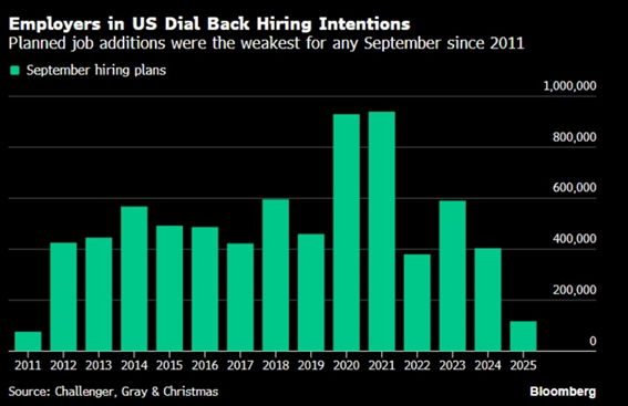 Na ausência do dado da BLS, o mercado tem olhado para indicadores privados do mercado de trabalho como o ADP e o Challenger, que são menos confiáveis, mas que vem ganhando importância em virtude da paralisação do Governo americano e podem ser o principal direcionamento que o FOMC terá na próxima reunião acerca da saúde do mercado de trabalho para tomar uma decisão.
