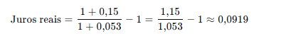Eles representam o rendimento já descontando a inflação. Com a Selic em 15% e a inflação em 5,3%, o juro real no Brasil está em 9,53% ao ano.